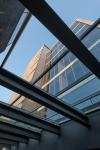 The main facade —on Avenida Universidad— is an integral glass element with prefabricated concrete frames to have a contemporary and uniform image. The access on ground level gets to and English courtyard located half level down were the commercial floor was located, resulting in a pleasant sunken plaza that serves both the building and zone users and also organizes the access to the corporate lobby.