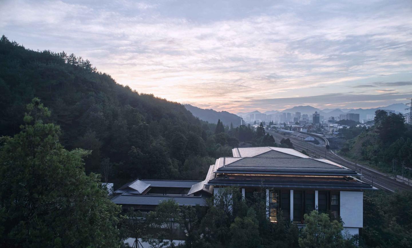 The Citied Utopia is located just north of Huangshan Railway Station, surrounded by the ecological green core of Jinzhu Mountain, physically separated from the central city by the railway. Looking back from the Jinzhu