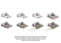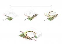 Users. These ramps link the gardens and terraces to all users. These ramps link the gardens and terraces together making a continuous picturesque walk up through the building.