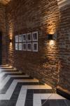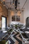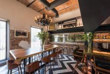 This project has one restaurant area inside and other outside in the courtyard surrounded by arches. To make the most of this area all the time, it was decided to install a retractable glass roof that provides natural light during the day and isolate the space according to weather conditions. The bar and the cellar are also two very important areas that have presence throughout the whole place as the bar counter goes over the place appearing through doors or hiding behind the walls.