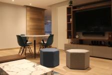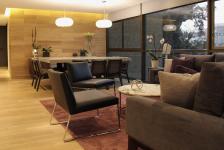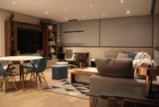 ARCO Arquitectura Contemporanea´s team achieved warm environments in all the apartment areas, even like in the living room and master bedroom, where you may feel the sober and elegant touch. These sensations are encompassed thanks to the ideal combination of materials both in walls and floors as well as in the selection of the materials of the designed or specified furniture. The main chosen material is an oak plank for the floors and to cover the walls that is in harmony with a neutral color gray palette and the American walnut carpentry. In some spaces an accent of color and contrast is given by the color blue.