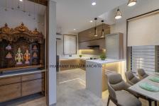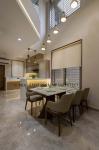 The service platform visually divides the dining and kitchen area. The kitchen also follows the nuetral color scheme with PU finishes and white corian top.
