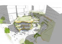 driver of the design is the creation of an outdoor retail street that simulates a green valley, winding across