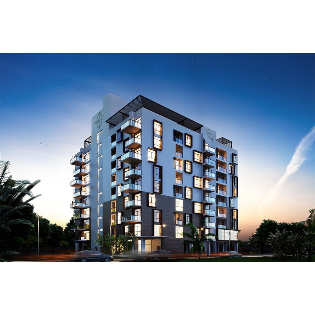 The building form is designed in a C shape for maximum desirable views to the surroundings and to segregate the building services towards the interior for maximum efficiency and optimization. The unique form also provides and opens to sky podium for recreational facilities. The building façade is articulated with a geometric pattern of recessed and cantilever balconies with treated edges to enhance the visual character of the overall built and to offer the residents a variety of semi-open and open spaces for leisure. The simplex and duplex units within the housing are so designed to accommodate the varied and expanding needs and aspirations of a typical family there.