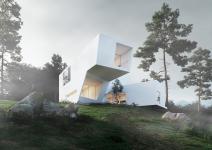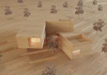 The two console volumes at the height have slid over each other in such a way that neither of them obstructs the proper light of the south and the proper view of the north and south for each other.