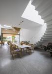Stair is the highlight of the house. Curved stairs combined with the atrium at the broken corner of the land, creating a sense of neatness and breaking the broken corner of the building. Finishing materials for the stair and the building are also considered. Terrazzo is used as a familiar material used by our forefathers in the past and also limits the disadvantages of the land and creates familiarity and close.