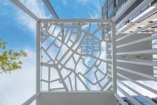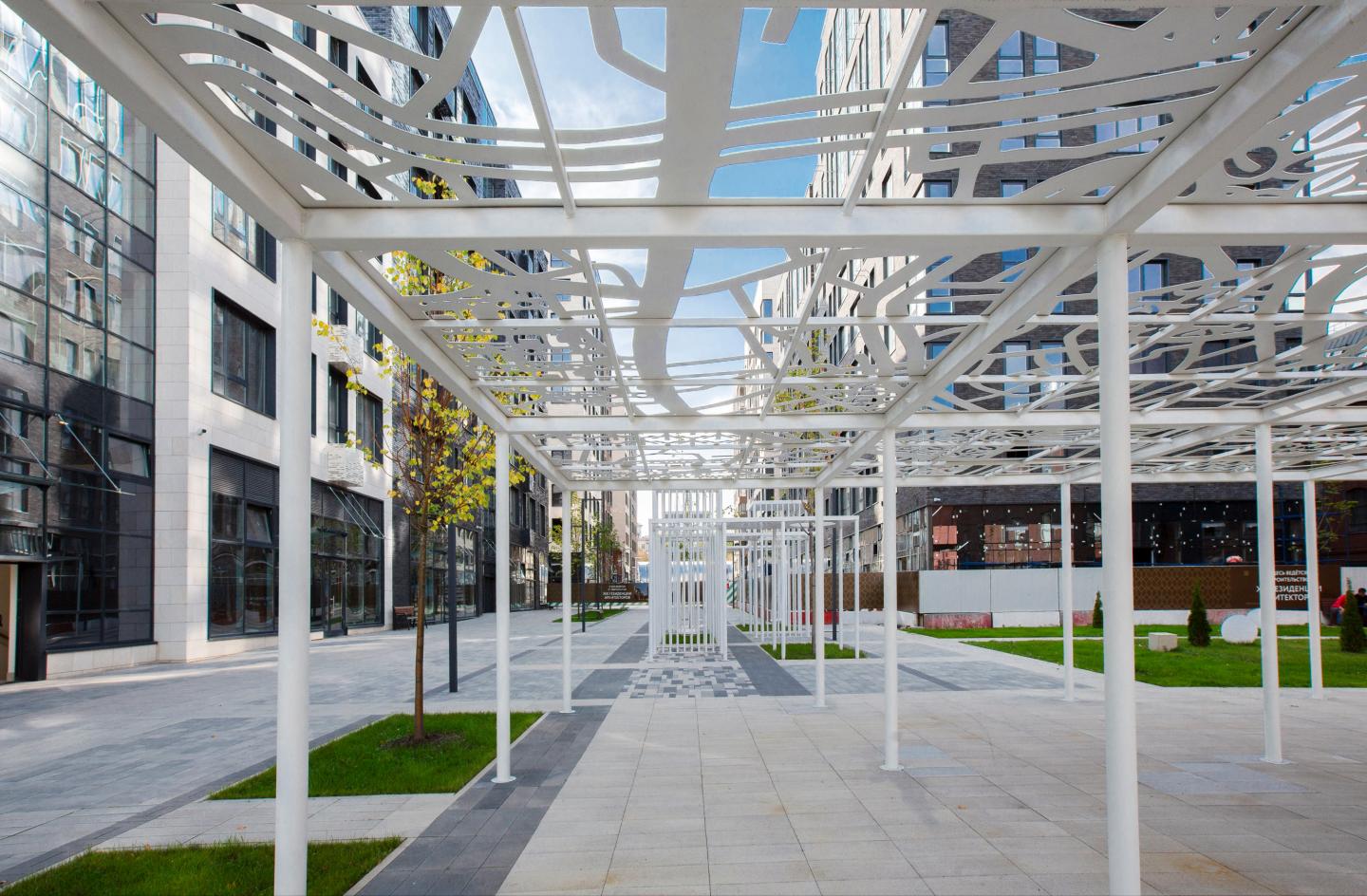 The path from Bolshaya Pochtovaya Street to Rubtsovskaya Embankment is the main part of the boulevard. The geometry of paving and landscaping creates a rhythmic composition that is complemented by small architectural elements such as canopies and swings.