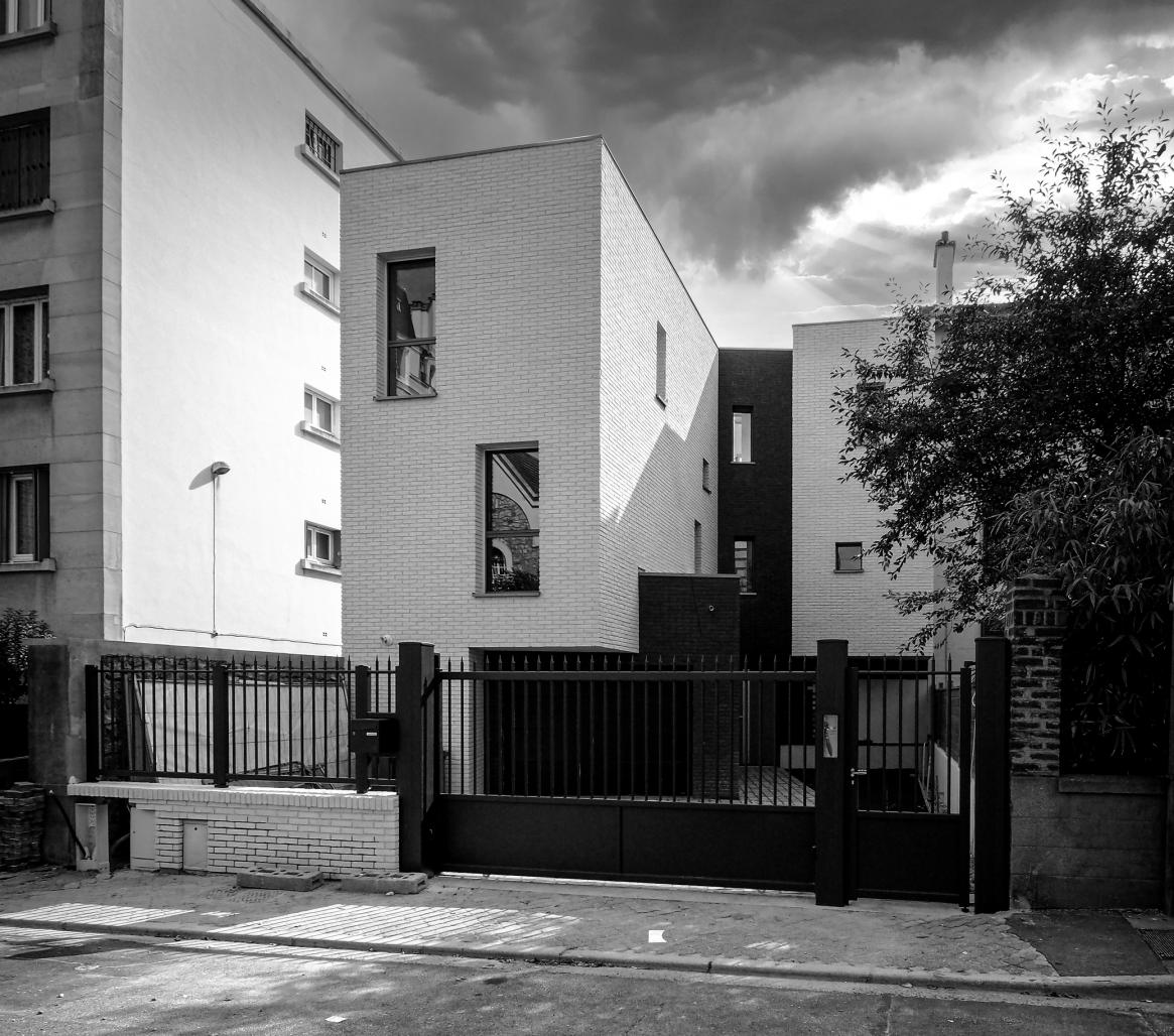 These two directions of composition associated with an L-shaped layout of the project as well as a different colorimetric treatment in the implementation of hand-molded brick, allows to stage a larger visible volume in the environment of the alignment on Rue . The project therefore responds to the urban character of the street with, on the one hand, maintaining a volume set back by around 5 m and, on the other hand, maintaining green spaces allowing for landscape continuity.