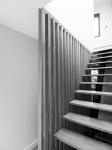 the guardrail of the staircase is treated by a principle of wooden cleat thus offering transparency on the staircase