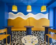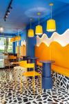 Having thoroughly understood the central element of the project, we concentrated on extracting the essence of the ice cream to capture it in space in different proposals such as the wavy shapes that resemble its soft texture, as well as the pieces of chocolate and fruits that appear while enjoying it, which We capture the terrazzo floor and the stools, maintaining the image in a reinterpretation that pays homage to the delicious product that is enjoyed there.