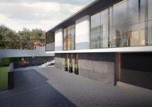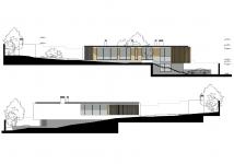 House resting on the hillside. Structure of the building consists of 2 levels.Top level offers its unique panoramic view, but at the same time integrity of the building is preserved due to the unity with its environmental context.