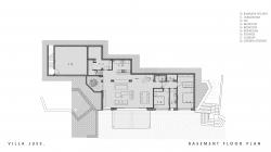 The building itself is a composition of three levels extending gracefully into the landscape, with two separate volumes connecting via a concrete courtyard on the east side, offering an alternative retreat during hot summer afternoons until sunset. The striking jacaranda tree, which disrupts the concrete surface of this courtyard, lends its name to the project, as it belongs to the jacaranda juss species.