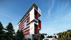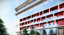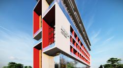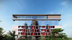 The project site is located in Kampala, the capital city of Uganda, in East Africa. There is a need for new hotels in Kampala, with the number of tourists increasing every year. The land is within walking distance of Acacia Mall in Kololo. The plot dimensions are 15m 60m. It is a narrow and long plot.There is an elevation difference of 3m on the land, which has road connections from both the upper and lower levels. A hotel design was requested on this narrow plot. Parking areas are designed by making vehicle entrances from the lower and upper levels. A rhythm has been achieved with 3 cantilever frames 3 floors high on the narrow facade of the hotel. These 3 storeys high spaces define the main facade of the hotel architecturally, giving it an identity.Contrary to these 3-storey frames on the main façade, single-storey frames are defined on each floor according to the hotel rooms on the side façades. Only 2 3-storey vertical frames are defined on 1 side facade. These different sized frames have created a wealth of proportions on the façade. Since the building plot area is very narrow, a facade with a richness of proportion was obtained in this way without losing m2. There are 3 vertical frames on the main façade, and 3 on the side façades define 3 masses. The floors between the 3 towers are designed with curtain-glass façades, creating a full-empty effect on the side facades, separate from the frames. Instead of repeating the same floors on every floor and on every façade, a rhythm and architectural identity created by different spaces has been tried to be achieved.