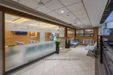 The Doctor’s consultation room is a well-lit space with major use of veneers for furniture and the same tiles on wall for minimal maintenance. And hence it gives a perfect choice to achieve this desirable character for space.