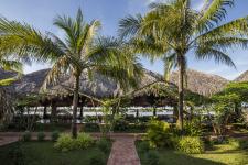 Coconut Homeland Restaurant is located at a riverside area along Mekong River in An Khanh commune, Chau Thanh district, Ben Tre province, Vietnam. The site has a large view towards the river, is separated from the highway and covered with coconut trees, a local typical plant.