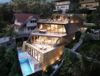 As the site has no street address, it presents challenges for construction. As a result the house will be built from pre-fabricated steel boxes which are delivered to site and craned from the street.