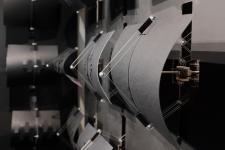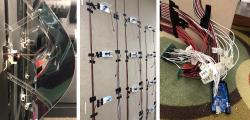 The installation was comprised of four 4’ x 8’ panels in the corner of a gallery, drawing users to the center of the space to amplify the sense of immersion. Each panel consisted of a grid of retractable tiles that acted as the kinetic component of the installation. Nestled within each module was a colored LED light that activated in concert with the module’s movement and detected emotion. A Raspberry Pi queried the webserver to read the last predicted emotional state, calibrating the installation.