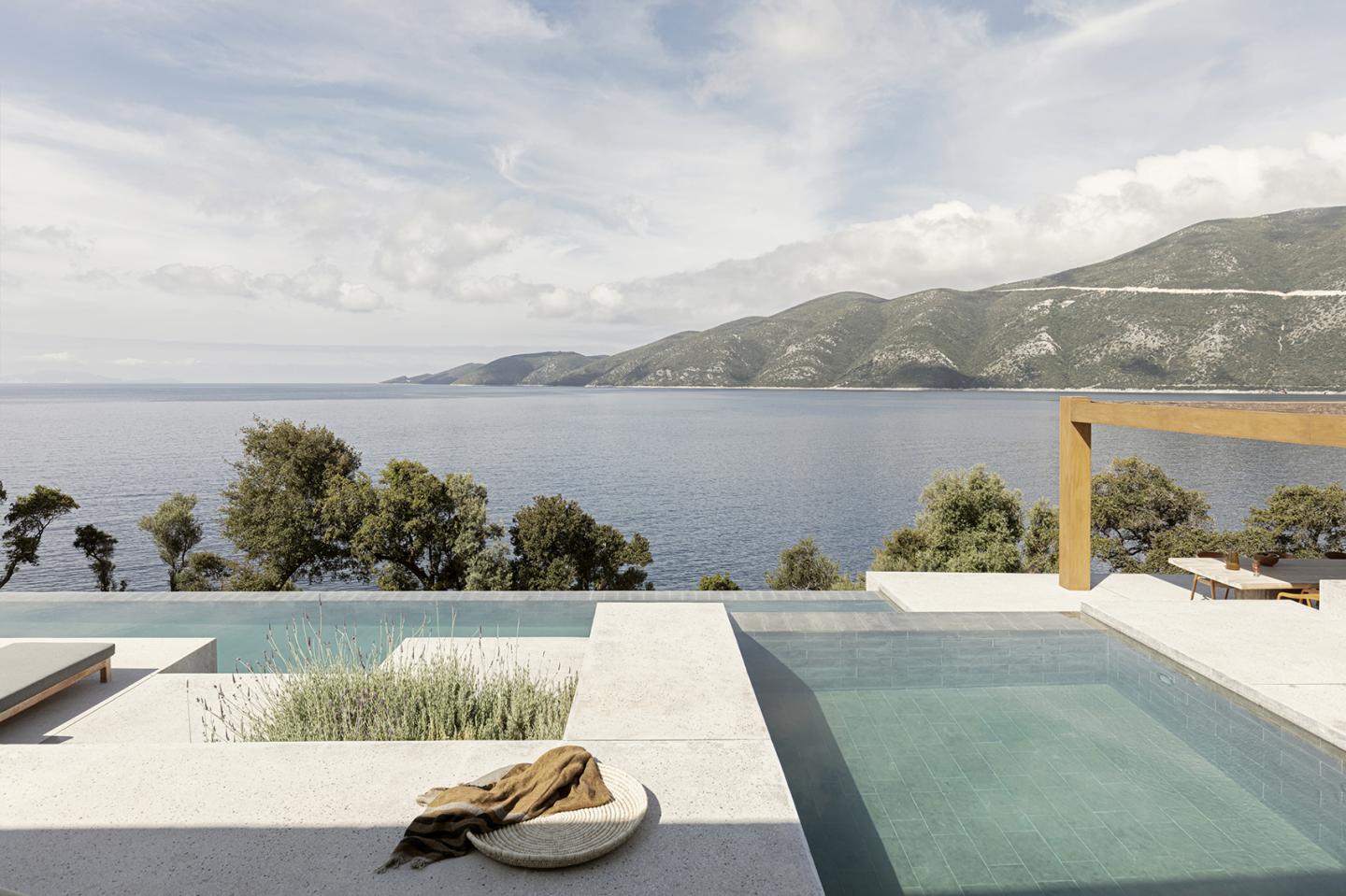 Taking its cues from the landscape around it, Villa Apollon by Block722 sits on the southern edge of the Greek island of Lefkada. The project, completed in early 2021, effortlessly merges contemporary architec-ture with nature, making the most of its context, while respecting its green surroundings.