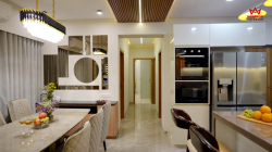 Sun Sky Park is a 3BHK luxury turnkey interior design project by Montdor Interior. With the use of high-quality materials and attention to detail, this project was designed with a touch of modern sophistication. The key feature in this home is its large windows that provide ample natural light and allow you to enjoy the views from your living room, dining area, or balcony.