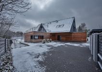 Due to its location, the characteristic feature of the plot was the significant terrain inclination. The slope went in two directions, which initially made it difficult to adapt the building to the terrain. An irregular, trapezoid shape of the plot was an additional difficulty. The direct arrangement of individual zones of the house at the ground level allowed to turn this apparent drawback into an asset. Thanks to that, the house gained the multidimensional character adjusted to the site.In spite of restrictive regulations, significantly limiting the possibilities of creating an interesting architectural form on this beautifully shaped scenic plot of land with significant southern inclination, we managed to create an interesting building structure, harmoniously integrated with the landscape. Moreover, the creative use of the topography let us separate as many as five different levels, legally falling within the definition of a two-storey building.