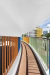 The corridors have a total length of up to 50m with a suitable slope (satisfying the requirement of moving freely without focusing on observation & safety), with a safety handrail, With a variety of eye-catching colors identified following each floor as an exchange space support to cover all the children physical activities lively and attractive. The "Movement Tower" design solution also supports to increase of approximately 3 times the area physical space for the school, but also creates an attractive exchange space - physical interaction activities because of the continuity and spontaneous vertical transformations full of inspiration and fun.