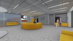 With the ramp passing over this exhibition area, it will be possible to pass to the classroom / conference hall, which can also be used as a multi-purpose space.