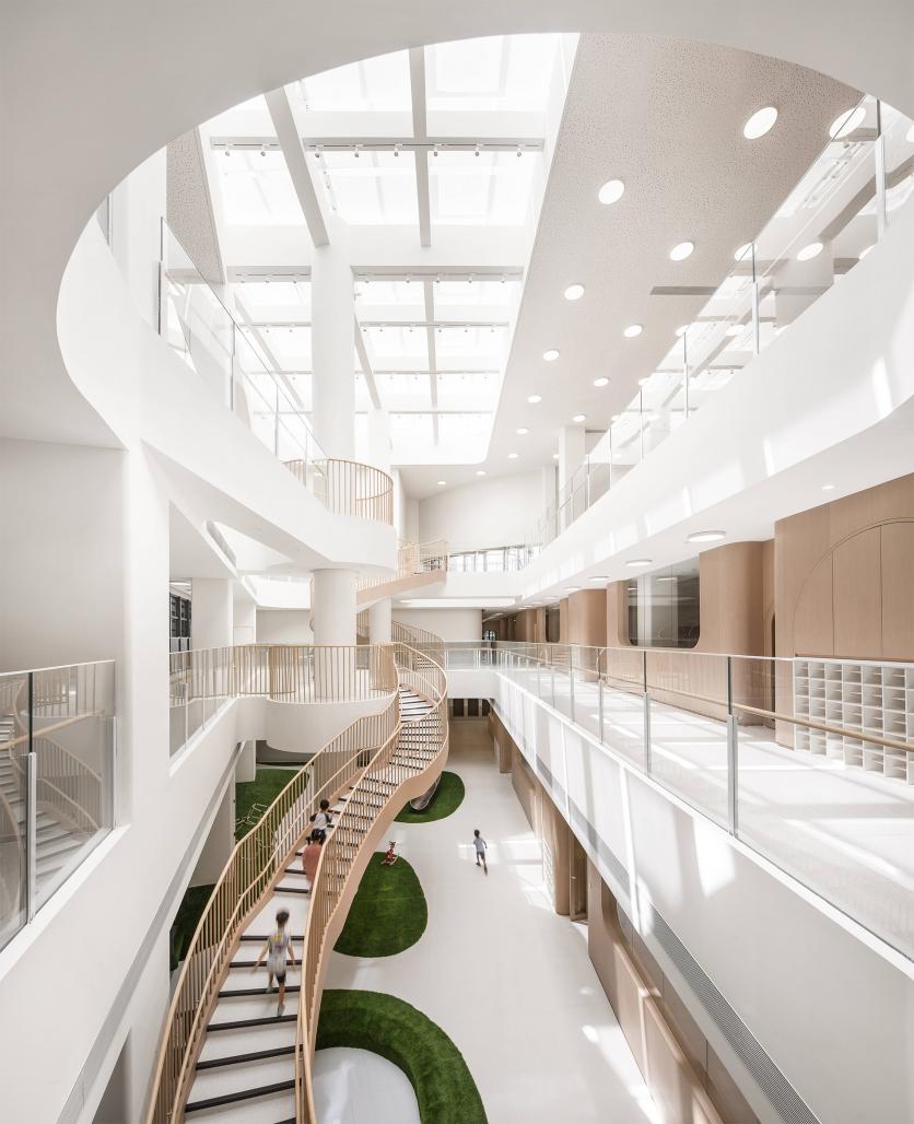 The kindergarten thoughtfully considers the needs of children at 2-6. The facilities are benchmarked against the needs of children at 2-6, and distinguish between those for children at 1.5-3 and those for children at 3-6. Classrooms adopt soft colors and materials, creating a home-like space where child can fully express their potentiality. The design of the kindergarten has been drawing on the Montessori concepts and principles. Besides safety, we give freedom back to children.