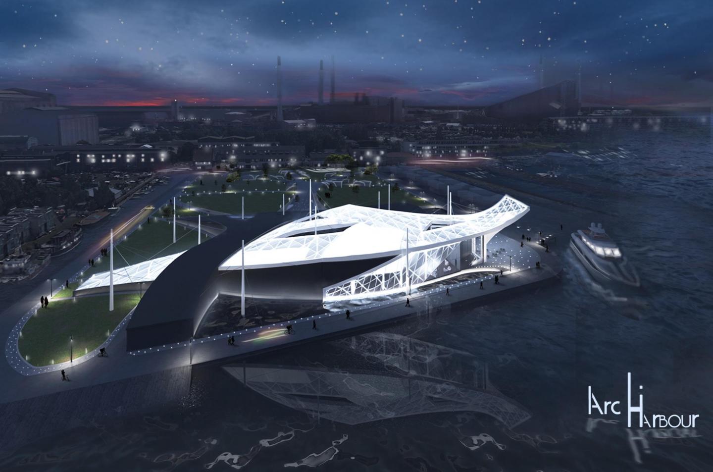 Derives from Greek- a place for faith, inspiration and education. “ArcHarbour” is Athenaeum of Architecture in Copenhagen designed to provoke people and their curiosity about the hidden messages behind architecture and its power in peoples` lives. The ethereal building interlaces with the surrounding environment proposing a sustainable design, innovation and a personal journey for every visitor. It is a bridge between past/future, nature/built, tradition/innovation, function/materials, sustainability/boldness, proportions and senses.