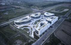 The project, the Business Incubator Building of Shanghai Wisdom Island Data Industrial Park, is located on Chongming Island, Shanghai, boarding Yinghu Road on the east, Fuchuang River on the west, Fuchuang Road on the south, and Cenghai Road on the north. The site is located in the suburban area, a transition zone between a large area of farmland and wetland. In correspondence, the design takes the concept of "softness when met with water, toughness when encountered by roads". Using both language, the design aims to characterize architectural design with the strategy of being tough on the outside and soft on the inside when dealing with the external natural environment and its internal artificial space.