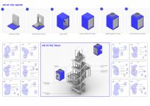 Capsules describe a different perception of space in which each user can live with their own personal belongings in the minimal space created. For these capsules, which can move with the electrical energy they receive from the stations, public space buildings in the city constitute another parking point.