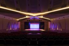 The challenge in an auditorium is to achieve least echo and RT values. To accomplish all of these, the designers have applied various unique materials to have a combination of reflection and absorption. The design of the vertical surface and the ceiling have been with the above philosophy blending the same with interior while resurrecting the wall panels, shapes, size and angle to achieve comfort for the audience. The overall appearance of the auditorium was designed and bore the significance of structural elements.