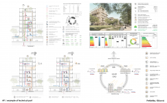 Our goal was to create a partially energy self-sufficient neighborhood, which will consist of low-carbon buildings. We focused on the use of natural and recycled materials and the recognition of building structures. For new buildings, it is aimed at maximum prefabrication, minimizing the wet process on the construction site, the use of local products and companies to create a minimum carbon footprint associated with transport and logistics activities on the construction site. When designing new buildings with a wooden supporting structure, we also considered the future recycling and demolition of buildings. We have breathed new variable and flexible use into the existing objects of industrial heritage. We used to open private objects to people with the possibility of constantly adapting the function.The newly designed buildings are designed as extremely economical passive houses with partial energy self-sufficiency. Saddle roofs were designed as an integrated covering of photovoltaic panels. The produced electricity is used directly in the building or accumulated in the battery storage. Excess energy is shared between objects as needed using a smart grid network. We aim for self-sufficiency and efficient use of energy without waste.The city of short distances minimizes the need for individual car transport. The urban space is thus taught to people and not cars.
