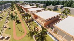 The project is located in Kigali, the capital city of Rwanda.Rwanda's topography consists of thousands of hills and the project site is located on the sloping surface of a hill. The plot continues with a vertical slope after a flat area at the upper level.At the lowest level of the land, there is a green forest area that is not open to project design according to the city master plan. For this reason, 2 row houses blocks, each consisting of 9 villas, were designed on the flat area above. where the slope starts, instead of designing row houses in the form of blocks, single villas sitting on the slope were designed.The individual villas located on the slope are designed by leveling according to the vehicle road level slope.Access to the villas has been provided by designing the road on a slope where vehicles can be used. When you enter the villas from the back level, the slope continues towards the front of the villas and villas are designed with retaining walls in this inclined area.