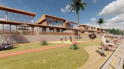 The social area was designed in the area between the sloping villas and the row houses in the form of blocks. Running track, sitting areas, playground are social equipment areas that all villas can use.