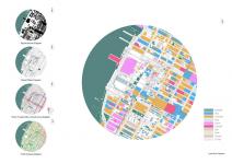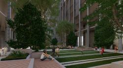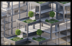 the courtyard is made for taking sunlight to the interior and getting benefit from it, as much as possible. Moreover, green roofs are preferred for harvesting greywater. Last but not the least, the courtyard and the elements that it consists creates a micro-climate. As active systems, transparent photovoltaic panels are integrated into the building's façade, for creating electricity from solar energy. Furthermore, stormwater is used in the building by people and for the vegetation on the terraces and the courtyard. The greywater harvesting system collects all the stormwater and sends it to the filter, where the water is purified, then stored in the storage. Other than those, a vast area in the building is separated for vertical farming, where people produce their nutrients.