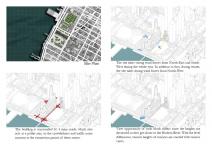 The edge of the site near the Hudson River will extend through the river with a sloped topography, which rises through the site. The topography will be vegetated. In case of a rise in the water level, the topography and the greenery will hold the water. In addition to that, some units will be located on the edges, that will fully function in regular times and also will be used when the water level rises. Since the site will be green and located nearby
