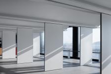 The central area of the exhibition hall takes a step forward flexible display way that accentuates no attributes. Horizontal and vertical moving panels create relationships and positions. The whole space can expand, move, rotate and hide as needed.