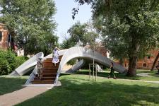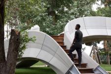 Striatus is an arched, unreinforced masonry footbridge composed of 3D-printed concrete blocks assembled without mortar. Exhibited at the Giardini della Marinaressa during the Venice Architecture Biennale 2021, the 16x12-metre footbridge is the first of its kind, combining traditional techniques of master builders with advanced computational design, engineering and robotic manufacturing technologies.