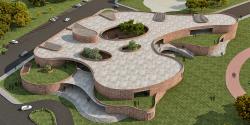 At the upper level open terraces visually connect to the playground with a sweeping stairway leading directly to the gardens.