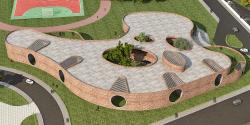 The design thus facilitates natural sunlight & ventilation to each part of the school whilst mitigating the heat gain , creating cool indoor spaces. The internal volumes open up towards a playground with both levels of the school directly linked to the play spaces.