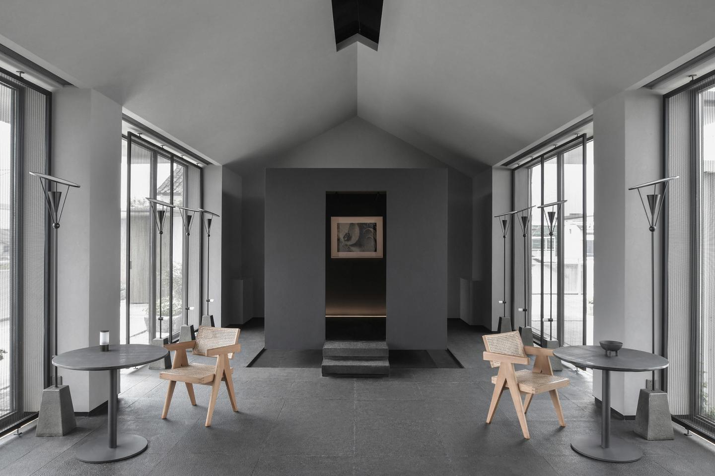The internal “pavilion” inside the reception area functions as a miniature art gallery, where only one painting is exhibited on the wall at a time. Distinct from conventional pavilions, it is isolated from outdoor noises, with a view to providing a tranquil spiritual experience. The gardening approaches from inside to outside are employed to create the spatial order. A large amount of transitional spaces play an indispensible role in producing the spatial atmosphere. The entrance achieves a subtle balance between “openness” and “closeness”, and utilizes a twisting circulation route to attract people to explore.The connection between inside and outside is strengthened by staggered openings with different sizes. The openings either block sightlines or offer a free view to the interior and the outdoor environment. As the sightline shifts, people can catch a glimpse of indistinct scene ahead. The archaized and harmonious ambience brought by various things, the greenery of the courtyard, overlapping layers and multiple dimensions blur the boundary between human and nature, and meanwhile enhance immersive feelings.Natural wood and stone are used as main spatial materials. The fragrance of wood and stone grains adds a varying aesthetic to the space as time passes by. The plants picked from wild mountains become decorations, the moisture, color and form of which change with time. The original introverted and gentle beauty of objects is intensified, producing a soothing atmosphere. The placement of each object is elaborately considered, which builds a dialogue with the space. The visual composition is combined with the spatial narratives. The imagery of mountain and water is mirrored by objects, closely interacting with daily life.With sunshine and shadows slanting through the interior, the spatial experience changes with time. As daylight decreases at night, overlapping shadows appear. The project innovatively integrates architecture, landscape and space, not only highlighting the traditional culture of the ancient town, but also realizing the interpenetration of interior and outdoor spaces. It creates unique living and experiential scenes awash with the charm of time and vitality, turning busy daily life into an ever-lasting artwork.