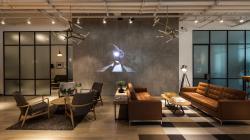 Polished concrete is used on the walls as a smooth texture, which textually compliments and contrasts the natural timber, which is warm and rustic. Both are used for their natural and raw elements that create a constant calmness in the space. Timber is used in several spaces in both flooring and wall covering. It is extensively used in the entrance area and on the reception desk façade. This was a deliberate way of opposing the harsh, energetic noise of the street and daily grind.
