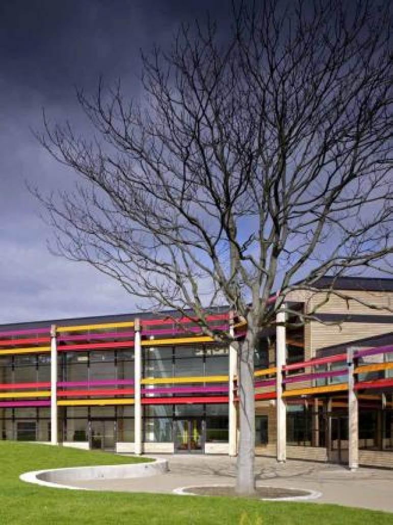 The brief was to avoid a clinical environment, and prepare the students for the world they will encounter rather than to shield them from it. The school therefore has been designed in an open, transparent manner, engaging with its surroundings and creating a prominent presence on Milkwood Road which reflects its personality and ethos.