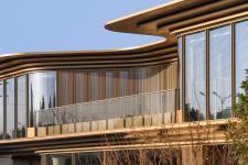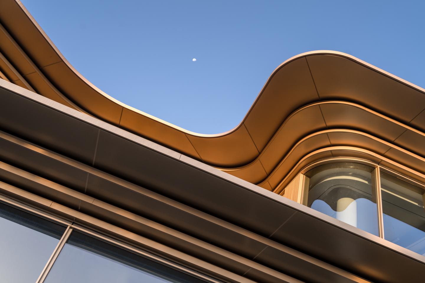 On the basis of Egrets Waves 1.0, the design team re-examined the curve and rounded corner elements, redesigned the segmentation size of the aluminum plate, and the way of splicing and edge closing. The high-cost angular arc glass in the Egrets Waves 1.0 was optimized with a radius of 1.3m, achieving a balance between effect and cost.