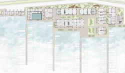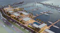 The project includes administration, custom, social and commercial facilities, cafe and restaurant, accommodation, swimming pool and storages for yachts.