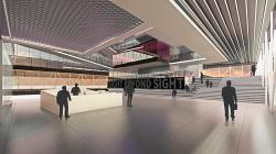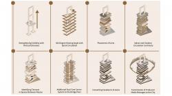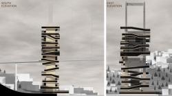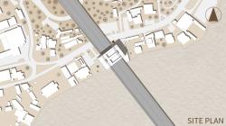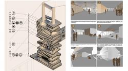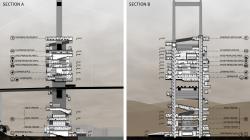 Sight Beyond Sight has a double core along the piers of the bridge. The building, which is placed parasiticly on the bridge, is carried by steel consoles fixed to the core and bridge piers. Ramps and stairs forming the spiral circulation are added in these consoles and create a gallery in the interior. Steel truss system is used between floors.