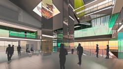 This project references the meanings of the Bosphorus Bridge, which unites and communicates the two continents. Besides, it invites humanity to unite, communicate and open their eyes against the conscientious blindness they are in. The structure stretches along the piers of the bridge to make the presence of authority felt. With the spiral circulation surrounding the bridge piers, visitors are in unlimited interaction with both the city and the interior. Along with the exploring spaces from the ground to the deck, visitors experience works of art and the media messages they contain as listeners, readers and viewers. The continuation of this experience ends with spaces where visitors can analyze and disassemble media messages and produce their own media messages. It is aimed to create an awareness cycle by making the visitor a media message and transferring this message to the whole city through digital facades.