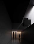 The product display space continues the overall design logic. To solve the problem of exhibition, ceramic tile products are divided into four categories, and are showcased in a pure manner on the horizontal and vertical surfaces within the space. With the interaction of light and geometric forms, and based on architectural aesthetics, the design expresses the confidence of the space and highlights the high-end products.