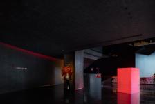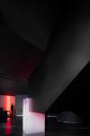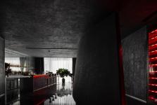When people enter the entrance lobby, curved walls come into view and guide their lines of sight. The black sculpted staircase becomes the visual focus of the space. The structural column at the bottom of staircase utilizes glowing red acrylic, effectively floating the stair structure and keeping the form intact. The luminous side of stair steps effectively separate the steps from the handrail structure, thereby appearing more delicate and exquisite.