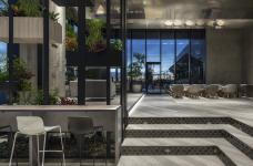 Therefore, this time, for the Stage 5 of a large scale business park located in Chiba New Town, some 470 m2 of the amenity space in the 154000m2 of the distribution warehouse was planned to be designed. Since the amenity space was required to be both relaxing and healing, we have created a space where people can feel and sense the nature and sea of Australia, where Goodman Group headquarters are located.